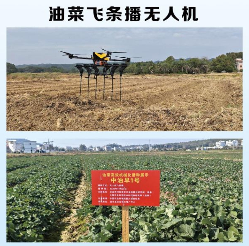 多光谱巡田无人机高频巡查、多谱采集、智能生图,辅助决策油菜田间管理作业;变量施肥/施药无人机处方规划、动态耦合、高精控制,实现油菜肥药按需施撒;基于处方的地面变量撒肥机处方解算、多参联动,促田块肥力均匀、油菜长势一致;对靶施药机器人融合导航、深度识别、对靶喷施,杀草除虫用药少;油麦兼用变量喷雾机液压四驱、对行施药,减时增效效果好;油菜化杀剂喷雾机行距可调、多重防飘、遥控操作,化学杀雄效率高;油菜飞条播无人机螺旋输种、条带落种、近地飞播,精量有序播种抢茬口;制种油菜除杂作业装备路径规划、AI视觉,智控避苗除杂净;油菜生产数字化管理平台智慧感知油菜农情全掌握、智能决策作业处方制定准、全程管控油菜单产提升效益高。